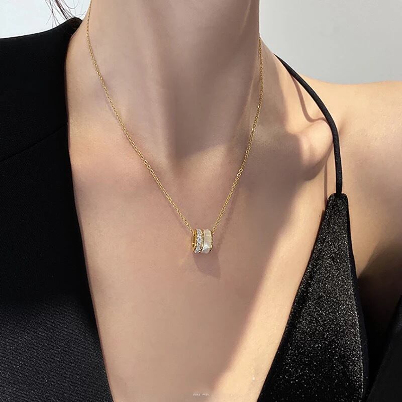 リングをモチーフにデザインしたネックレスで、どんな装いにもさりげなくマッチします♪