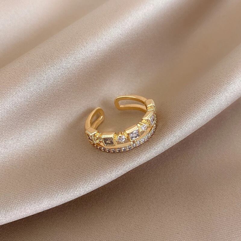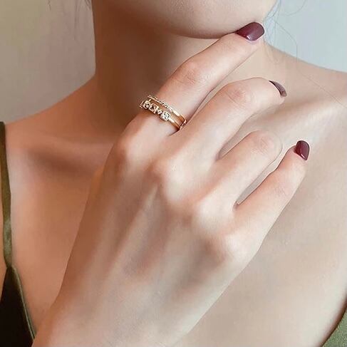 ゴールドのダブルリングになります♪リングを重ね付けしたように見えるデザインでオシャレなリングです^ ^