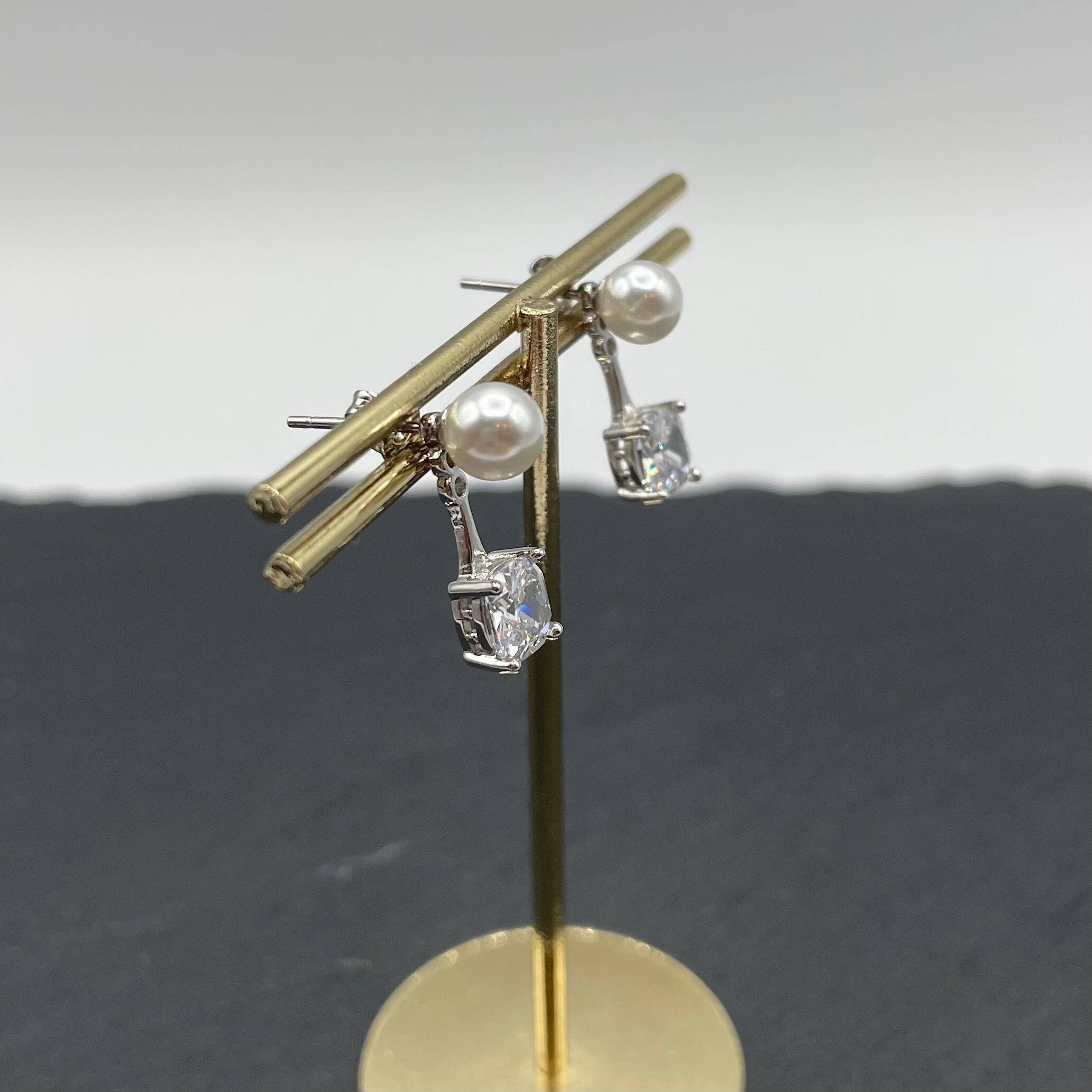 ドロップピアス ジルコニア×パール シルバー925