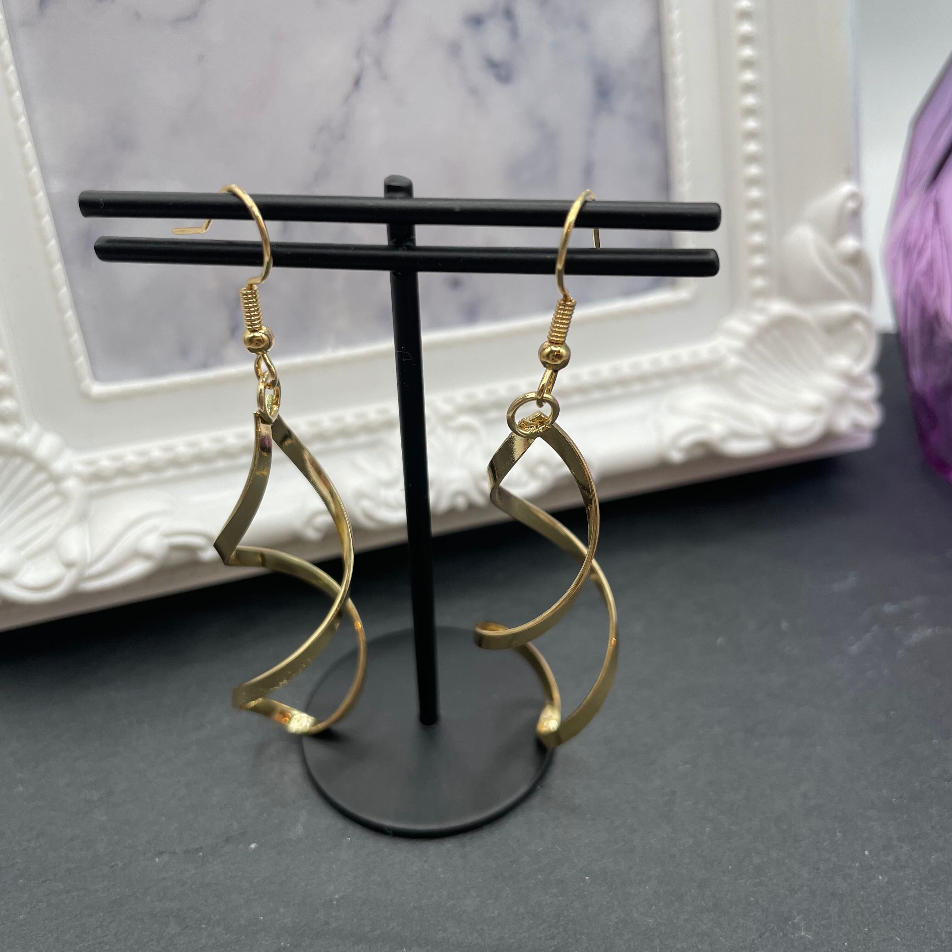ひねりを加えて立体感を出したドロップフレームピアスになります^ ^