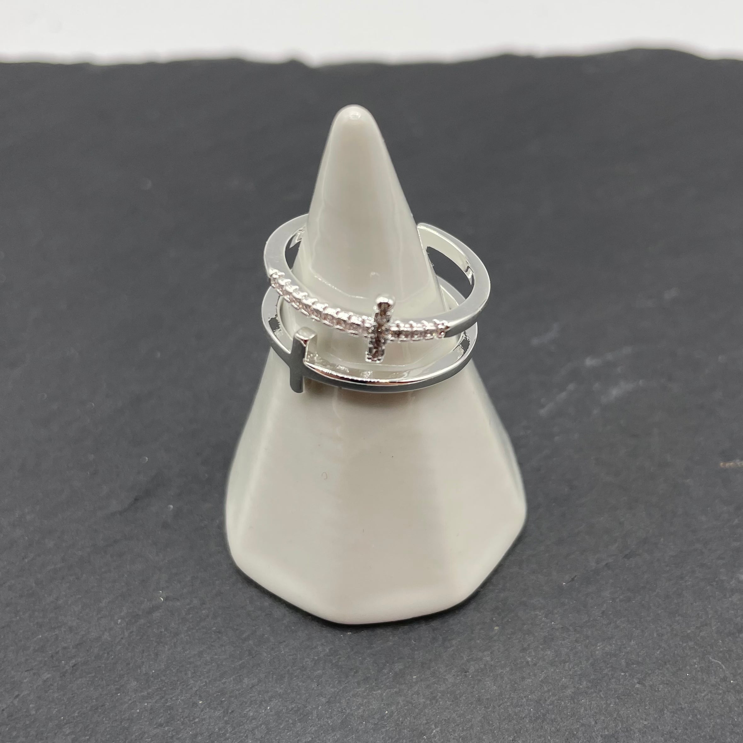 2種類のクロスが1つになり、指を包み込むようにデザインされたリングです♪