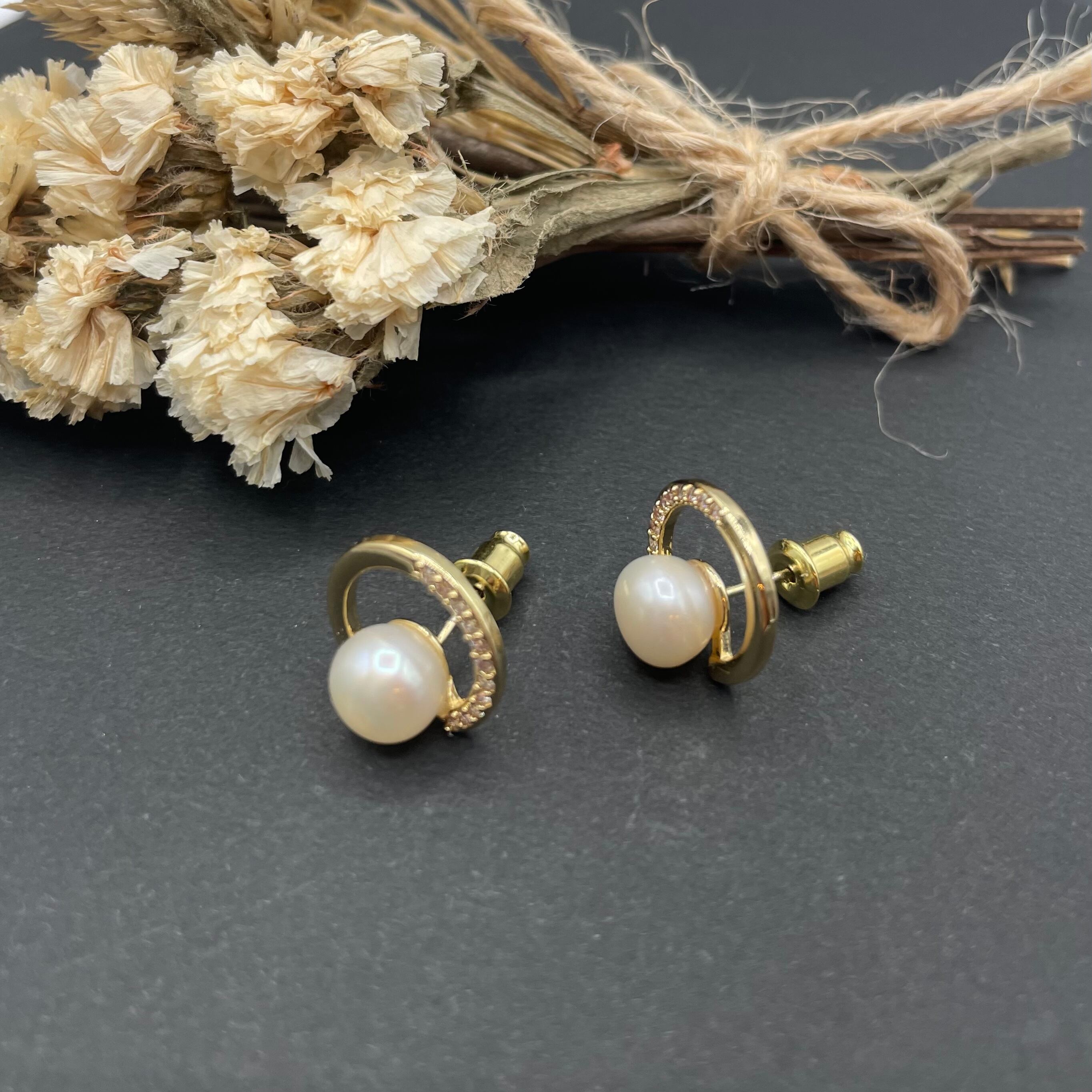 人口パールとジルコニアをあしらった、サークルモチーフのピアスです^ ^