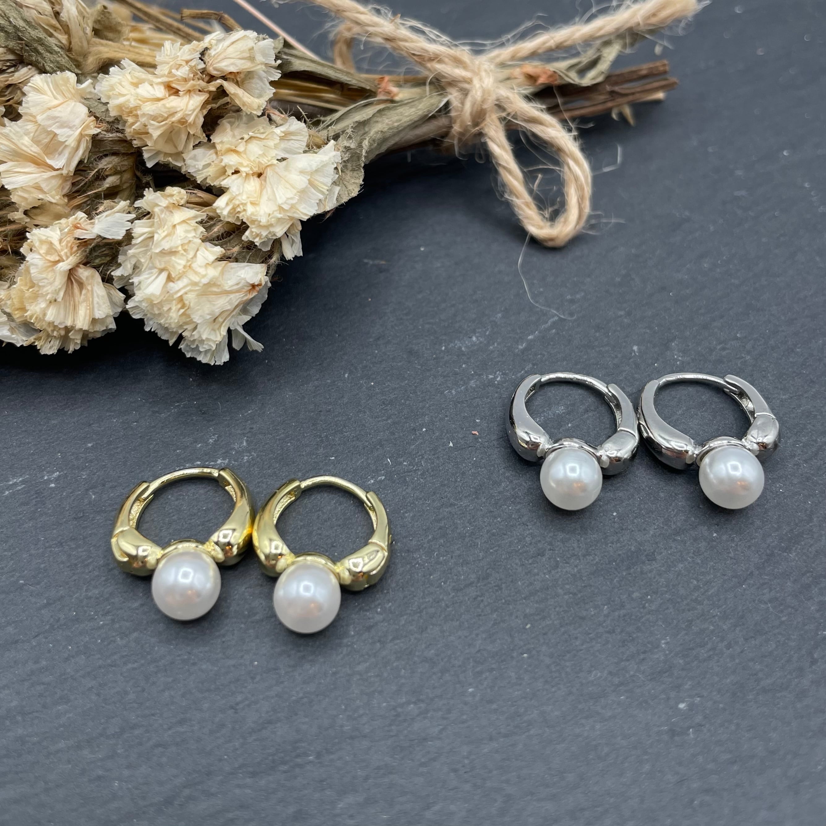 太めのフープとパールをあしらったデザインは佇まいも上品です♪