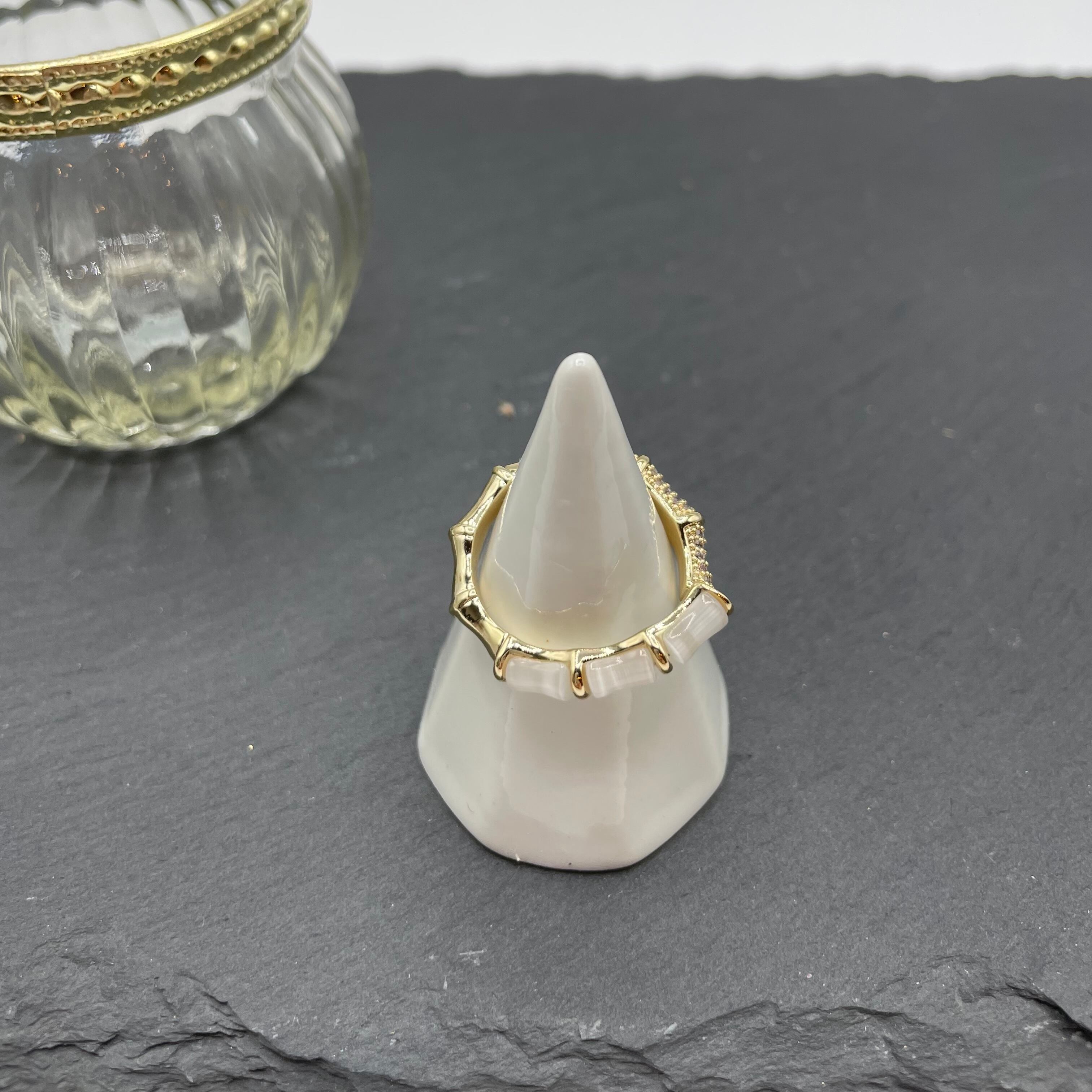 ボリューム感があり、ゴールド、ホワイト、ジルコニアの輝きが手元に存在感をプラスしてくれるリングです^ ^