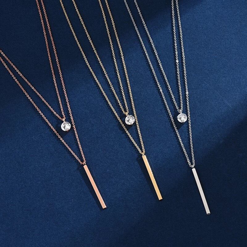 ストレート+大粒ジルコニアの綺麗ネックレスです♪