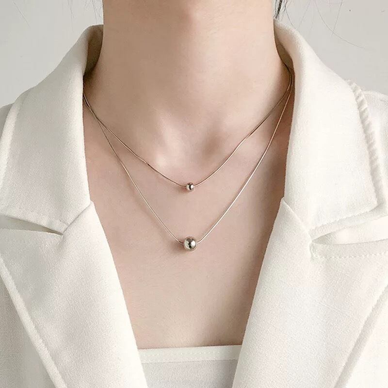 ボール型のトップのスネークチェーン2連ネックレスになります^ ^