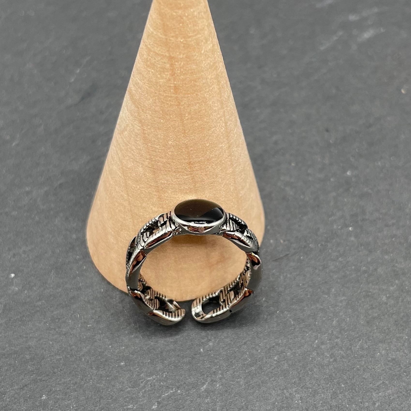 オニキスのようなブラックストーンがついたシンプルなシルバーリングになります^ ^