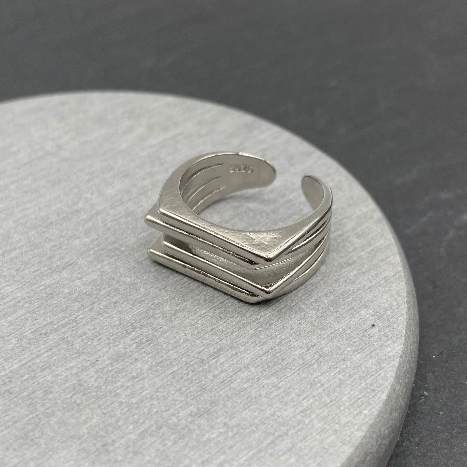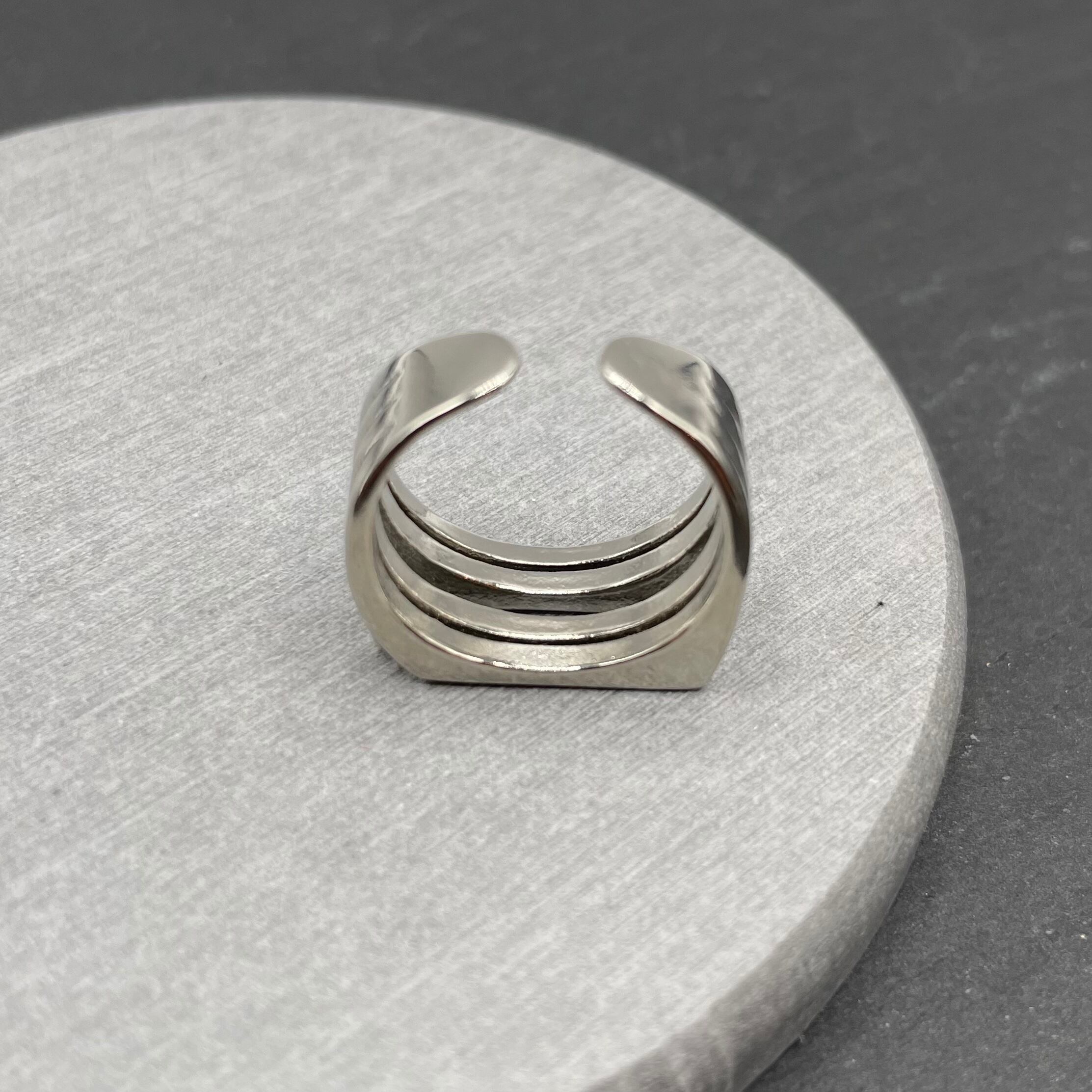 変わったシルエットのシンプルなシルバーリングになります^ ^